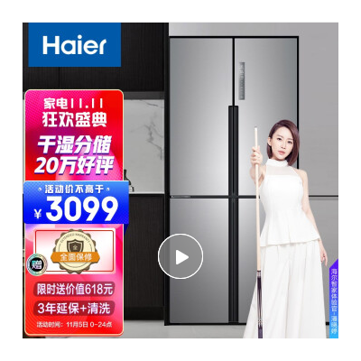 海尔(Haier )477升双变频风冷无霜十字门多门纤薄除菌冰箱家用干湿分储厨装一体BCD-477WDPCU1