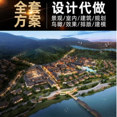 鸟瞰图制作3D规划效果图庭院建筑园林景观工厂乡村改造设计PS...