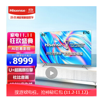 商品名称:当季新品 海信电视 85E7G 85英寸4K超清智慧屏 130%高色域超薄游戏社交全面屏 液晶智能平板电视机巨幕 以旧换新